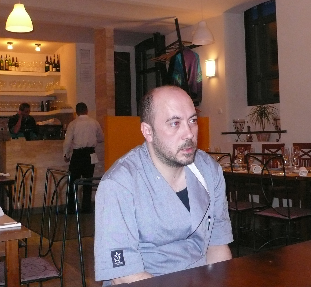 A leves után olyan hal került elém, amivel korábban - sajnos - nem találkoztam. Az ördöghal rendkívül finom állat, talán az első tengeri hal, amit az édesvízi kedvenceimmel (kősüllő, harcsa, menyhal) szemben is preferálnék halsütéskor. A vacsora után megkerestem a neten. Elég ronda, nagyrészt fejből álló jószág, vagyis feltehetőleg nem olcsó játék ebből készíteni egy vasárnapi ebédet, de talán szerzek majd egyszer otthonra is, amikor egyre gurmébb barátaim kártyázni jönnek. A tökéletesen elkészített, ruganyos húsú és szálkátlan ördöghal mellett csodálatos sáfrányos cukkini és vajmártás volt a körítés. Egy számomra ismeretlen pincészet (Válibor) remek kéknyelűjét kóstoltatta meg mellé Csongrádi Csaba.