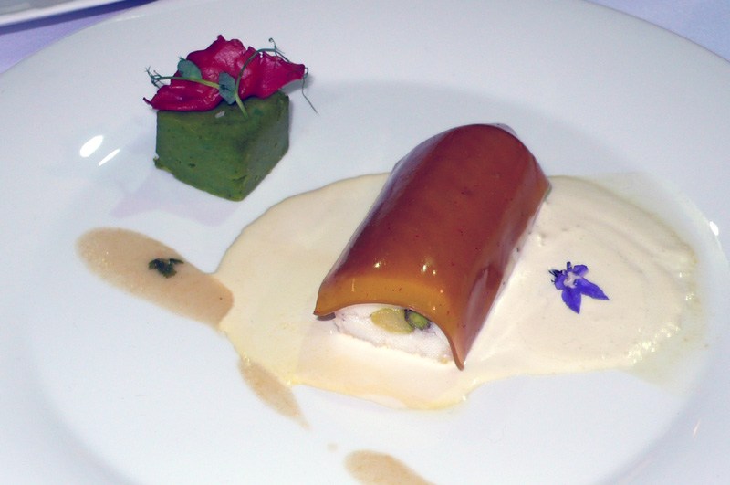 Széll Tamás mintha mást tudott volna a követelményekről, mint a többiek, így ő nem próbált annyi ilyen-olyan formájú, rafinált kis összetett bigyót elhelyezni a tányérokon, hanem feltehetőleg az ízekre/textúrákra koncentrált. Azok lehet, hogy sokkal jobban eltaláltak voltak, mint a többieké, annál is inkább, mivel éttermihez közeli tálalás és kevesebb-nagyobb elem esetén könnyebb tökéletesen elkészíteni a húsokat. Ugyanakkor nem hiszem, hogy ilyen tálalással indulna Brüsszelben, vagyis felfoghatjuk úgy is, hogy kihagyta a kűr egyes formai elemeit.