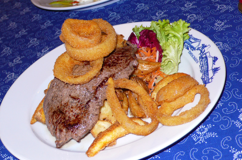 Szerintem a hatalmas adagtól még lehet jó is a hely, meg rossz is. Rossz, ha rossz az étel, vagy csillogó szemmel közli a pincér, hogy innen még senki nem távozott csomagolt maradék nélkül, kisebb adagot viszont nem adnak.