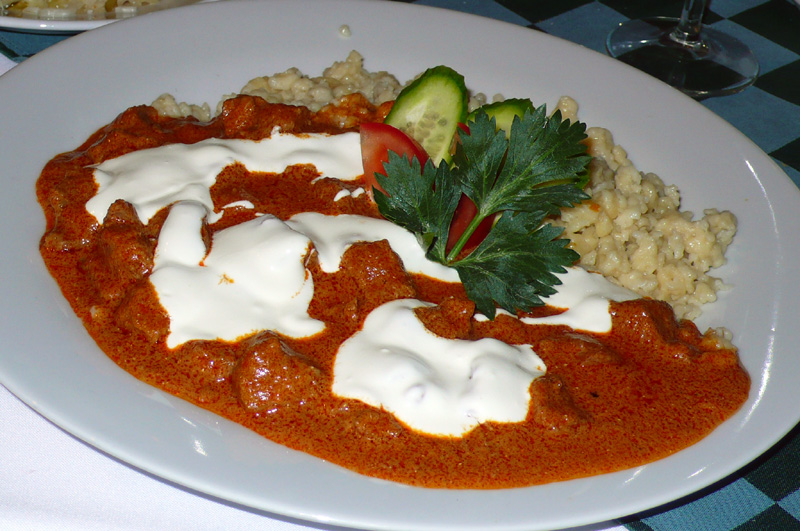 Régóta készülök írni róla, tavaly azért maradt el, mert nyáron érzékeltem némi visszaesést a konyha teljesítményében. Nem tragikus dolgok történtek, csak puhább volt a nokedli a szokottnál, rémes minőségű és fölösleges sajtot reszeltek egyes ételekre, vagy éppen húsleveses bukéjú kanállal adagolták a fagylaltot. Nem tudom, mi volt az oka, ugyanazt a két szakácsot láttam akkor is, talán csak pechünk volt párszor. Őszre helyrerázódtak a dolgok, újra szívesen jártunk pörköltözni.