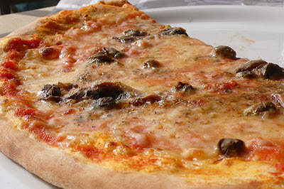 A La Fratta nevű egység tornácán széles - olasz! - felirat hirdette a fafűtésű kemencét. Egy pizza kétfelé osztva ideális könnyű ebéd gazdag orosz turistáknak, betértünk. Pincérünk rögtön megérdeklődte nemzeti hovatartozásunkat, majd a továbbiakban "magyariként" tisztelt minket. Én kedvesnek, míg Kamilla sunyinak találta őt...