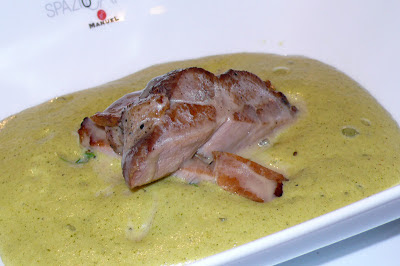 A Spazio (korábban: Manuel Delikátbisztró) tulajdonosát régóta ismerem. Még a Maligán üzemeltetése idején tőle vettem a kávét, gasztrofórumokon sokszor vitába, a való világban pedig bonyolult barterügyletekbe (pl. kedves feleségével leebédelték a kávégépünk új vízszűrőjének árát) keveredtünk. Aztán hál' isten nekem nem volt többé éttermem, neki viszont igen, kávézó-bisztróvá alakította a körúti Csirkefogót, így fordult a kocka: 2010-től mi jártunk ebédelni hozzá. A helyzetből fakadóan számos bennfentes információval rendelkezem, ezekkel természetesen visszaélek a lapozás után...