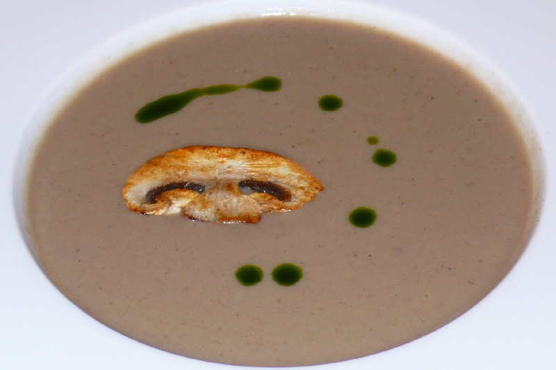 A vastag falról Szepsy István néz rám, szemközt a tulajdonos szerepel fotókon, különféle gasztronómiai és egyéb hírességek társaságában. Némi meglepetésemre üdvözlő falat nincs, viszont a leves hamarosan megérkezik. Jó választás, selymességével és ízintenzitásával kiemelkedik az országszerte kapható tejszínbe fullasztott, szemcsés löttyök közül, az adag sem csupán gesztusnyi, a kalaptányér ellenére.