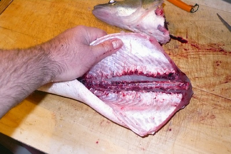A süllőben csekély a belső szervek és a vér aránya a testtömeghez képest, tehát jóval tisztábban dolgozhatunk, mint egy ponttyal. Viszont van a bordákhoz tapadó belső hártya, ezt érdemes a késsel óvatosan lefejteni, majd nekiláthatunk a gerinc eltávolításához.