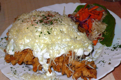 Nagy klasszikusa a Rétisasnak a borzaska, méretben már a zóna adag (1390 Ft) is mellbevágó: 2 db öklömnyi krumpli-hús kombó, tejföllel-sajttal gazdagon beborítva, némi salátával. Valaki szólhatna Imrének, hogy nyilván így is sokaknak tetszik, de a klopfolatlan centis karaj 2x1 cm krumpliburokban lényegesen vonzóbb lenne. A legutóbbi borzaskához vitaminsalátát (890 Ft) rendeltem - a vödörnyi, fetával és olajbogyóval gazdagon vegyített keverékből maradt másnap ebédre is.